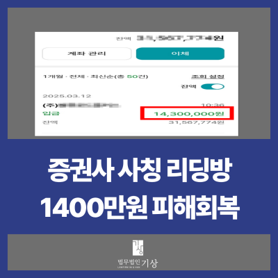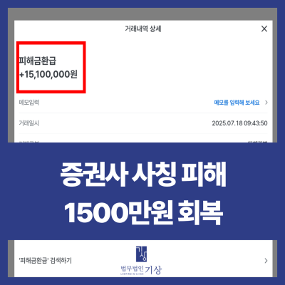 1,500만 원 회복 - 국내 유명증권사 사칭 리딩방 피해 회복 사례